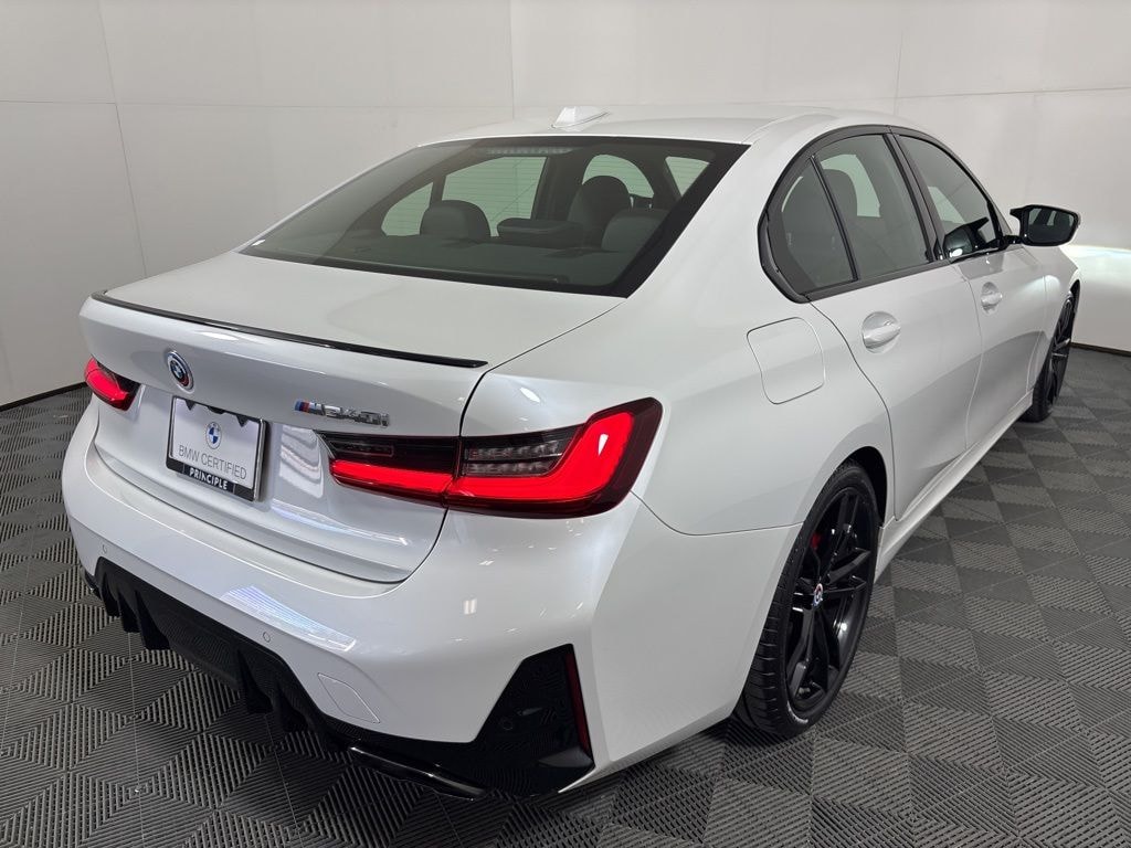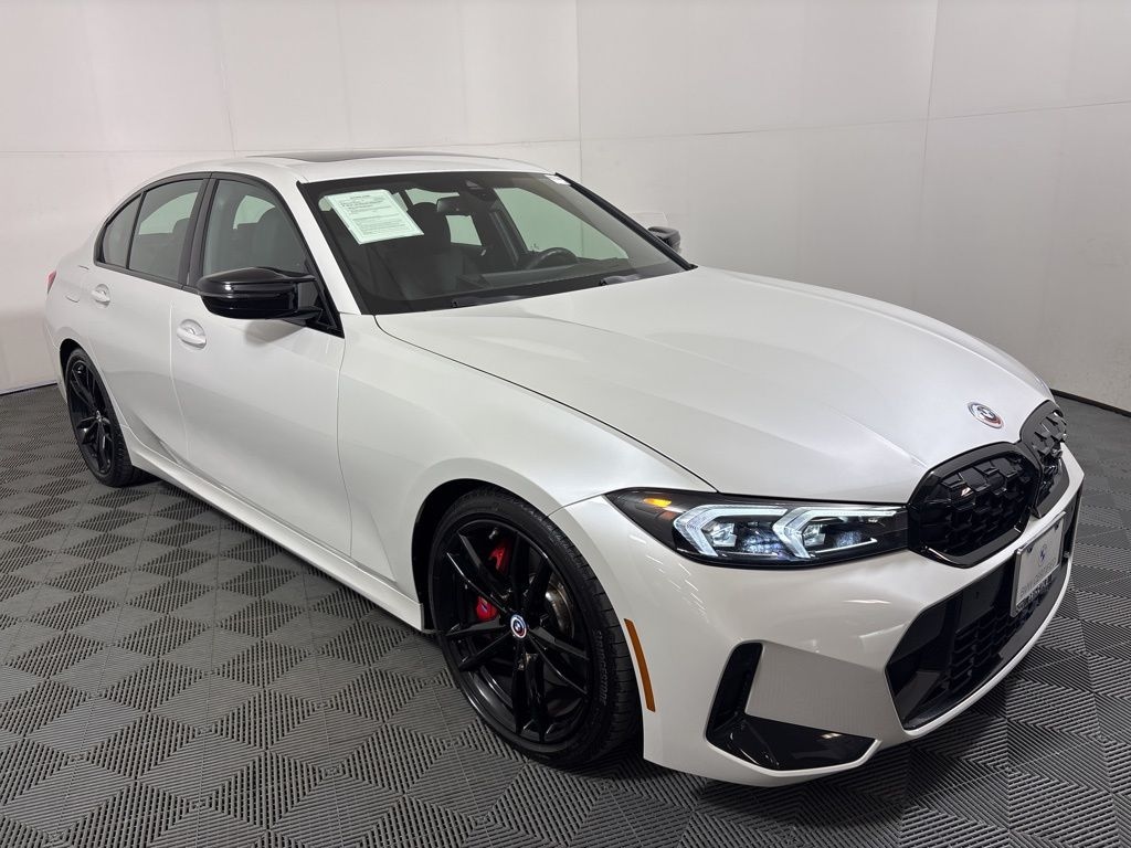 Certified. 2023 BMW 3 Series M340i CARFAX One-Owner. Mineral White Metallic New Price! Priced below KBB Fair Purchase Price! Active Blind Spot Detection, Active Driving Assistant, BMW Curved Display w/HUD, Connected Package Pro, Driving Assistance Package, Extended Shadowline Trim, Heated Front Seats, Heated Steering Wheel, Lane Departure Warning System, LED Lights w/Cornering Lights, M Shadowline Lights, M Sport Brakes w/Red Calipers, M Sport Package Pro, Navigation System, Park Distance Control, Premium Package, Shadowline Package.