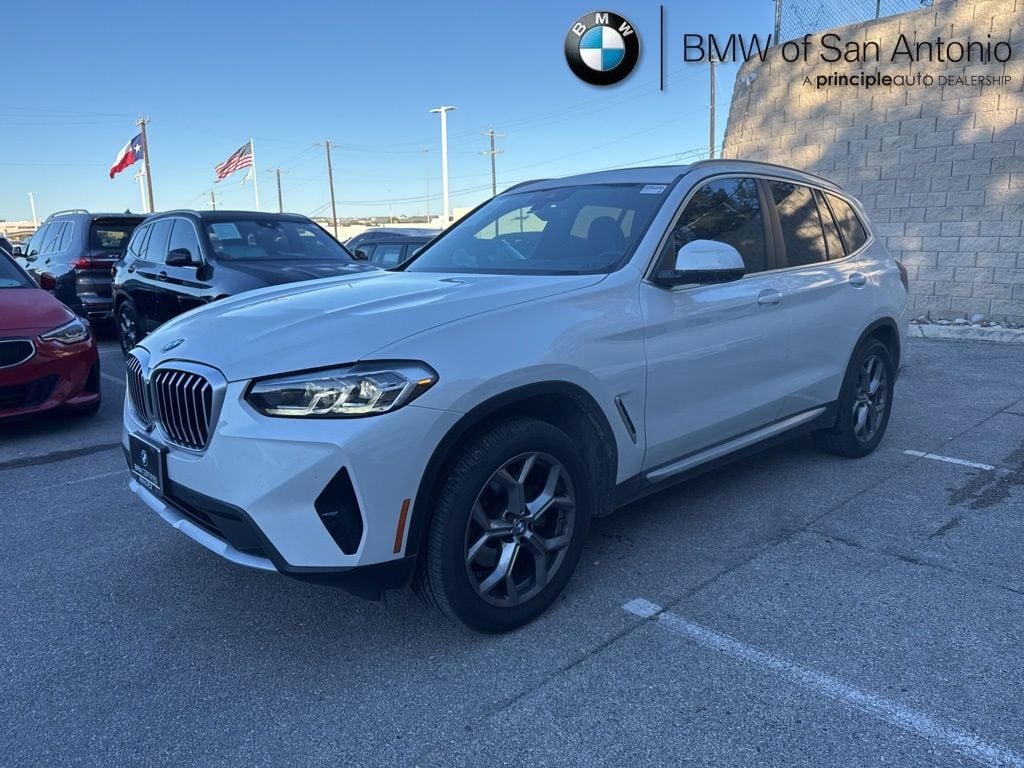 Certified. 2023 BMW X3 xDrive30i CARFAX One-Owner. Mineral White Metallic Recent Arrival! 8-Speed Automatic Sport, Connected Package Pro, Driver Lumbar Support, Heated Front Seats, Heated Steering Wheel, Live Cockpit Pro w/Navigation, Navigation, Navigation System, Panoramic Moonroof, Premium Package.
